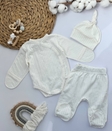 Боді легко одягається, повзунці мають зручну посадку, а шапочка-вузлик забезпечує комфорт та тепло.Ідеально підходить для пологового будинку, виписки, сну та щоденного носіння.