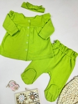 👗 Комплект для дівчинки: туніка з рюшами + повзунки + пов’язка (інтерлок)