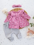 Комплект для девочки 👗: туника с рюшами + ползунки + повязка (ткань интерлок)