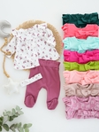 Мягкий и элегантный комплект из интерлока подарит вашей принцессе комфорт и стиль. В набор входят туника с рюшами, ползунки и мягкая повязка на голову — всё, что нужно для фотосессий, роддома и прогулок 🌸