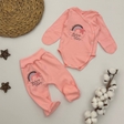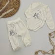 Практичний комплект для немовлят, що складається з боді та повзунків, виготовлений з м'якої бавовняної тканини інтерлок. Ідеально підходить для щоденного використання як для сну, так і для прогулянок або дому.