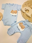 Практичний та комфортний комплект для малюка з інтерлоку ідеально підійде для повсякденного носіння в теплу пору року або в приміщенні. Ніжне боді з коротким рукавом 🩵 у поєднанні з м’якими повзунками подарують малюкові комфорт, а мамі — спокій.
