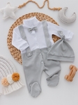 Елегантний та ніжний комплект для малюка, виготовлений з натурального інтерлоку — ідеальний вибір для виписки, святкових заходів, фотосесій або повсякденного використання. М’яка тканина забезпечує комфорт і турботу про ніжну шкіру немовляти.