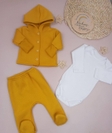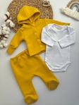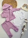 Ідеальний набір для щоденного використання вашого малюка. У комплекті — тепла кофточка з трикотажу трьохнитка з начосом, м’які повзунки з високою посадкою та дихаюче боді з натурального інтерлоку. Все зроблено для максимального комфорту і захисту ніжної шкіри дитини.