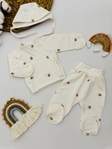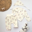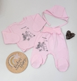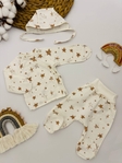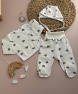 Практичний та зручний комплект із трьох найнеобхідніших речей для вашого малюка. Ідеально підходить для перших днів після народження, щоденного використання, сну та прогулянок. М’який футер не подразнює ніжну шкіру, добре зберігає тепло і дарує комфорт.