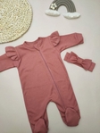 👑 Комплект для новонародженої дівчинки: чоловічок з рюшами на блискавці + пов’язка на голову