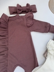 👑 Комплект для новонародженої дівчинки: чоловічок з рюшами + пов’язка на голову