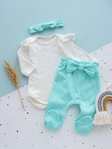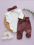 Ніжний та зручний комплект для дівчинки від народження, виготовлений із якісної натуральної тканини інтерлок. Тканина приємна до тіла, не викликає подразнень та дозволяє шкірі малюка дихати. Ідеальний вибір для щоденного носіння або виписки з пологового будинку.