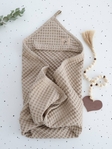 Виготовлений з натуральної вафельної тканини baby піке, яка відзначається високою здатністю до поглинання вологи, швидко сохне та не подразнює ніжну шкіру малюка.