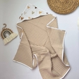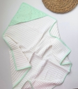 М’який та натуральний кутик для новонароджених, виготовлений із поєднання вафельної тканини та 100% бавовни, чудово вбирає вологу, швидко сохне та ніжно огортає делікатну шкіру малюка. Ідеальний варіант для першого купання, виписки з пологового будинку або як кутик для хрещення.