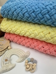 Шукаєте м’який і безпечний плед для немовляти? Цей в’язаний плюшевий плед із 100% бавовни, виготовлений з пряжі Alize Puffy, стане ідеальним вибором. Він подарує затишок і тепло з перших днів життя.